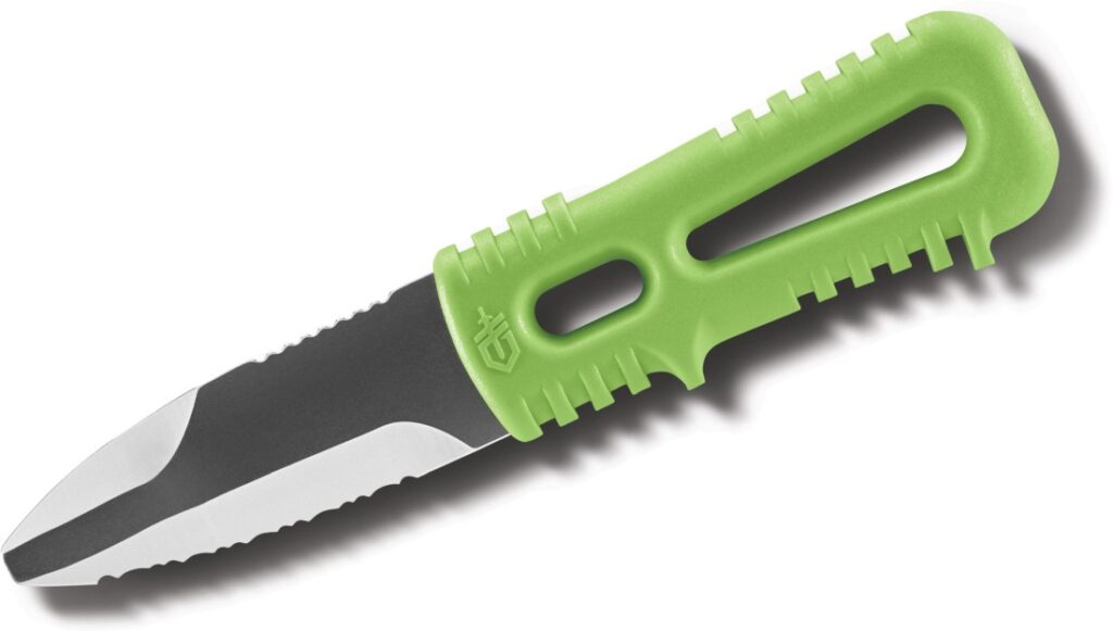 A 7,5 cm hosszú penge mellett további eszközként marlin-tüske, sör- és seklinyitó is található rajta. Fluoreszkál a markolata, így sötétben kis könnyű megtalálni. A vaskos műanyag nyél sokkal inkább hasznos, mint hivalkodó. Masszív darab, de a listában szereplő néhány késsel ellentétben nincsenek éles vagy kiálló szélei, amelyek megkarcolhatnák a térképasztalt. A 132 g-késhez tartozik bekötőpont is.