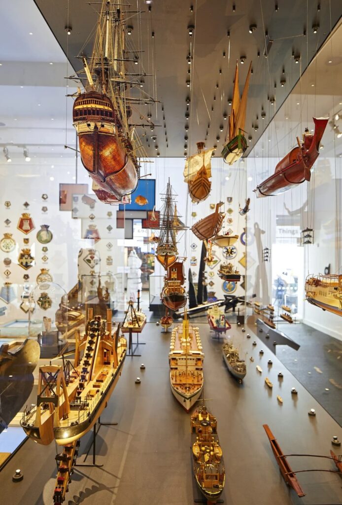 A múzeum mintegy 3500 modellből álló gyűjteménye az egyik legkiválóbb, tételei az egyiptomi hajóktól a modern haditengerészeti hajókig terjednek. Ezek a modellek, valamint az eredeti hajótervek archívuma értékes a történészek és a haditengerészet szerelmesei számára. A navigációs eszközök és ereklyék gyűjteménye számos tengeri kalandról és tragédiáról mesél.