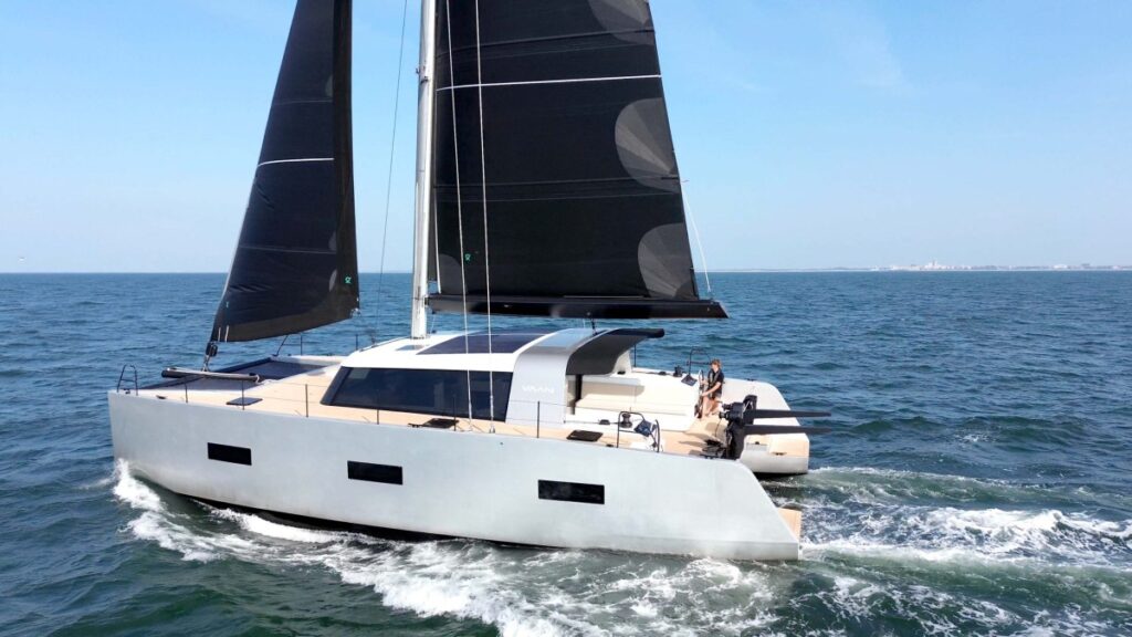 Szintén katamarán, szintén alumínium. Nemcsak a hosszú távú vitorlázást képviseli, hanem a luxust és a teljesítményt is – a Tortue-nál is jobban. Hollandiában gyártják, letisztult vonalai szinte futurisztikusnak tűnnek. Technikailag lenyűgöző: villanymotorok hajtják, fedélzetét parafa borítja, belső burkolatai paneljei újrahasznosított PET-palackokból készülnek. Beltere vagány, szinte kubistának tűnik.