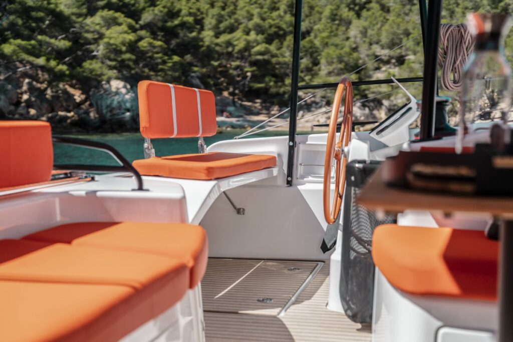 Minden felhúzókötél, vitorla és állítókötél a jobb oldali fedélzeten keresztül éri el a kokpitot, ahol két erős Harken csörlő segítségével lehet megbirkózni velük (a csörlők kérhetők elektromos hajtással is). Muszáj ugyanakkor rendet tartani ezen a részen, mert nem kevesebb, mint tizenkét kötél fut össze ott, amiknek a szortírozása fegyelmet és figyelmet igényel a legénységtől, különösen manőverek közben.