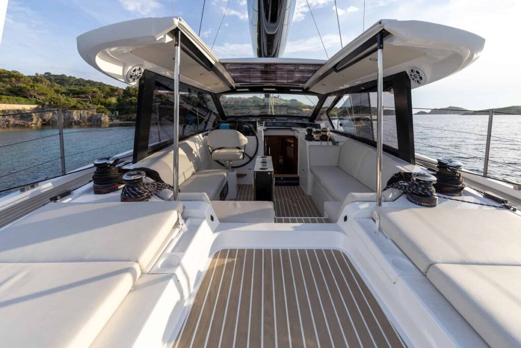A fedélzet és a zárt terek elrendezése leginkább a katamaránokéhoz hasonlítható, emiatt azonnal felmerül az emberben a kérdés: vajon hogyan teljesít a vízen? Nos, pontosan úgy, ahogy az egy egytestűtől elvárható, ráadásul kis létszámú legénységgel, nekik teljes védelmet nyújtva.