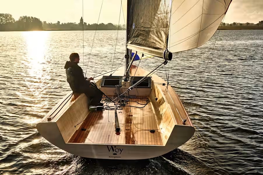 Jan Brügge szándékosan kerülte a trópusi faanyagok használatát, a hajó építésének első lépése az volt, hogy megpróbálja megtalálni a helyi, hazai faanyagok tökéletes keverékét a vázhoz, a hajótesthez és a fedélzethez. A Woy 26-on egyedi gyártású, merev karbon tőkesúlypenge tartja az ólomból készített, 340 kilogrammos bulbát. Utóbbi – híven Martin Menzner filozófiájához, miszerint a változó merülés előnyeit teljes mértékben ki kell használni – felhúzható, így a merülés 1,10 és 1,90 méter között változik. Az árboc és a baum a magyar Pauger Carbon gyártmánya, letisztult, rendezett vonalai sallangok nélkül illeszkednek a hajó makulátlan dizájnjához.