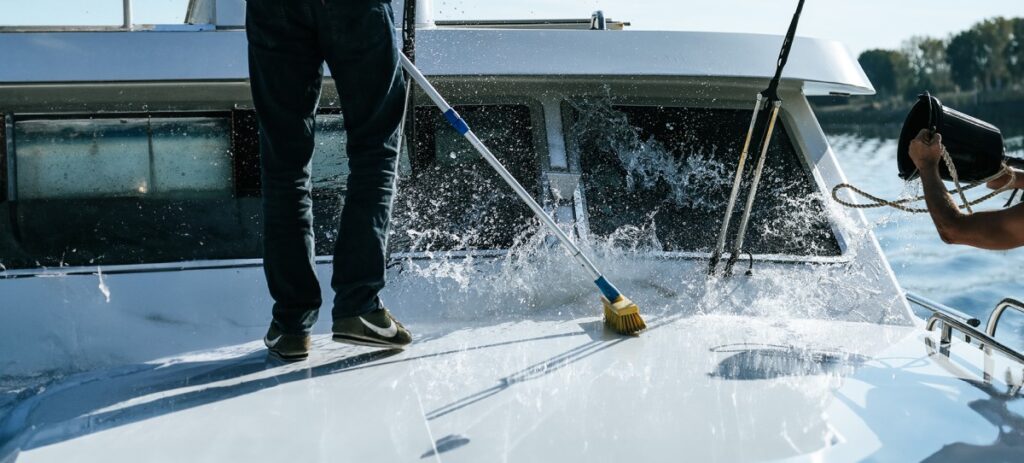 A környezetbe juttatott termékek mennyiségének csökkentése a takarítási szokásának megváltoztatásával szintén elérhető. Érdemes minden út után édesvízzel leöblíteni a hajót, hogy minimalizálja az újraszennyeződést. Az öblítés lemossa a frissen odakerült szennyeződéseket, ezzel meghosszabbítva a tisztítószeres mosások közötti időt. Ha szappant vagy tisztítószert használ, azt lehetőleg a parton álló hajón tegye, hogy a maradványok ne kerüljenek azonnal a vízbe. Kisebb karbantartási munkák után érdemes folttisztítást végezni, és a szennyeződéseket ronggyal letörölni az öblítés helyett, a rongyot pedig később a szemetesbe lehet dobni.