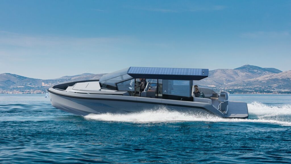 A standard hajtáslánc teljesen elektromos, két 300 kW-os E-drive motorból és egy hatalmas, 440 kWh-s akkumulátortelepből áll, ez a kombináció 25 csomós sebesség mellett 35 tengeri mérföldes hatótávolságot biztosít. Az akkumulátorok töltését a kabintető napelemei segítik a nap folyamán. Számos hagyományos külmotor és farmotoros hajtáslánc-opció is elérhető (Volvo Penta, Mercury, Yanmar), két Volvo Penta D6-440 motorral a végsebesség várhatóan 41 csomó körül alakul, a hatótávolság 25 csomós utazósebességgel 500, 6 csomóval csorogva 1500 tengeri mérföld. Két 600 lóerős Mercury V12-es benzinmotorral a végsebesség 47 csomó köré emelkedik, de a hatótávolság ennek megfelelően csökken.