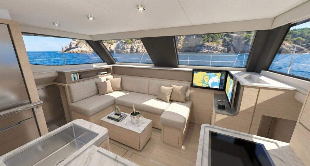 Kapható Sedan vagy Flybridge változatban, mindkét kivitelnél fontos a kilátás és az ergonómia, de természetesen az Aventura 37-ben sikeressé vált nagyvonalú belső terek is megmaradtak. Így már jól ismert a belső elrendezés: 3 vagy 4 kabinos konfiguráció, világos lakóterek és akadálymentes közlekedés a belső és külső területek között.